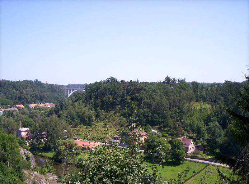 View of the river Lužnice with a glimpse of the 'rainbow' bridge